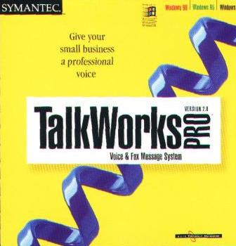 TalkWorks PRO 2.0 software brings professional voice and fax messaging to home offices and very small businesses. It's integrated voice-mail, message-notification, call-tracking, and fax-on-demand capabilities keep you in touch with your customers 24 hours a day-without monthly fees or additional mailbox charges as business grows.
