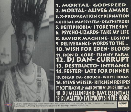 This is a compilation showcasing artists from the early 1990s Christian industrial and alternative electronic scene on Frontline Records. It features a cross section of industrial, EBM and gothic influenced acts alongside DJs offering rave and remix material. The collection highlights bands such as Mortal, Deitiphobia and Savior Machine alongside DJ and remix contributions. The set presents a mix of aggressive industrial rock, electronic body music and darker gothic/metal textures.