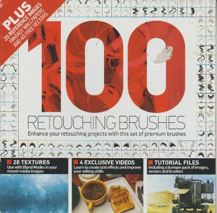 100 Retouching Brushes PC CD textures retouching videos tutorial files images +