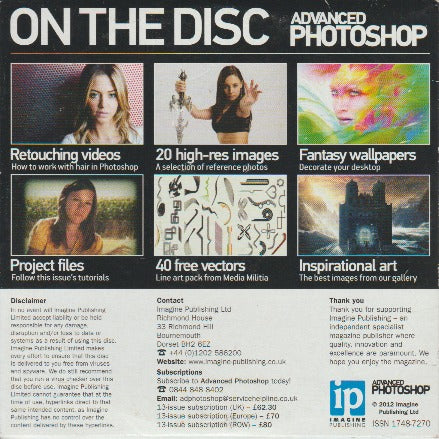 ON THE DISC SHOP Retouching videos 20 high-res images Fantasy wallpapers How to work with hair in Photoshop A selectio'n of reference photos Decorate your desktop Project files Follow this issue's tutorials 40 free vectors Line art pack from Media Militia Inspirational art The best images from our gallery