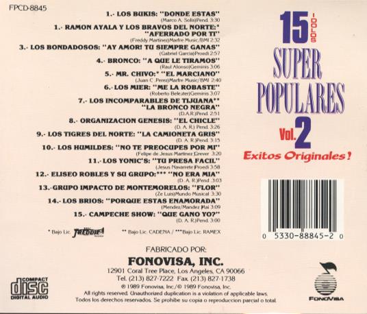 15 Idolos Super Populares Vol. 2 MUSIC AUDIO CD Los Bukis Los Tigres Del Norte +