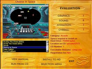 The software provides an evaluation system in which each game is rated by graphics, sound, animation, and overall playability. The evaluation includes a screenshot from the game, required computer specifications, and point-and-click installation or access buttons to the manual. All games are listed in an alphabetical drop down menu for ease of locating and can be sorted by category or game ratings.