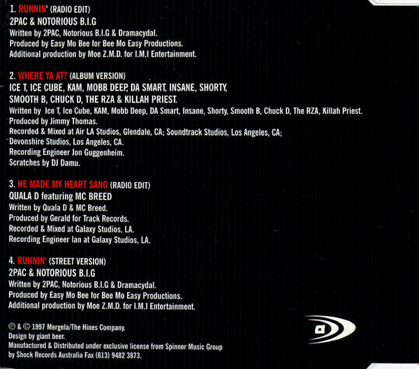 2Pac & Notorious B.I.G. Runnin' MUSIC AUDIO CD hip hop gangsta 4 track Australia