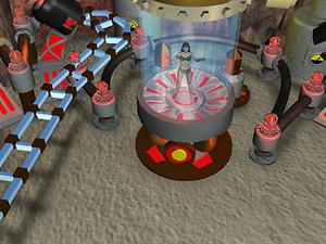 The climax of the story (the escape) involves Rex and Spector having to rescue Mary and Neeka from the clutches of the evil scourge Heckla, figuring out the secrets to the machine that opens a portal back to the modern world and destroying Heckla and his army in the process. Verbal clues are given by the protagonists throughout the quest that help guide the player in terms of the proper sequence of hitting various targets. Animated scenes show the characters moving from level to level after the required tasks have been completed.