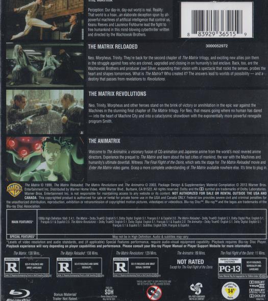 The Matrix Collection 4-Film Favorites 4-Disc BLU-RAY VIDEO ACTION sci-fi Reeves