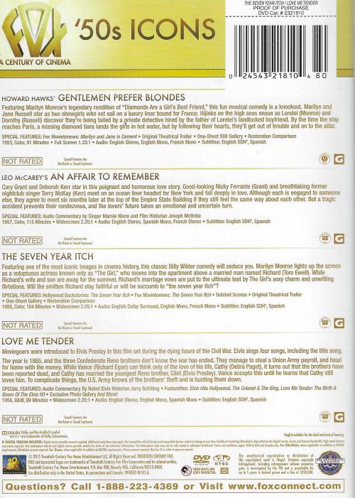 50s Icons: Gentlemen Prefer Blondes / An Affair To Remember / The Seven Year Itch / Love Me Tender 4-Disc Set