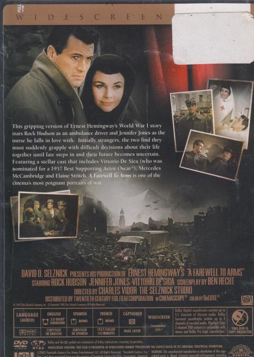 A Farewell To Arms DVD VIDEO MOVIE 1957 Rock Hudson Jennifer Jones NEW SEALED