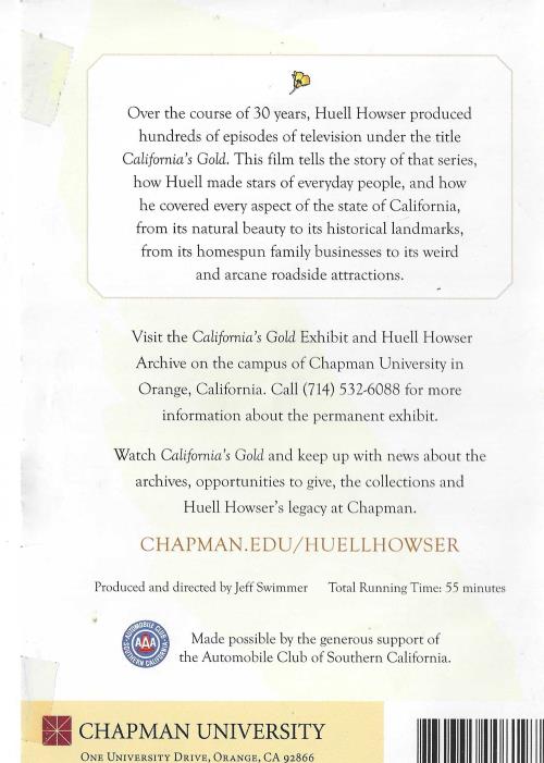 Over the course of 30 years, Huell Howser produced hundreds of episodes of television under the title California's Gold. This film tells the story of that series, how Huell made stars of everyday people, and how he covered every aspect of the state of California, from its natural beauty to its historical landmarks, from its homespun family businesses to its weird and arcane roadside attractions. Visit the California's Gold Exhibit and Huell Howser Archive on the campus of Chapman University in Orange, California. Running Time: 55 minutes