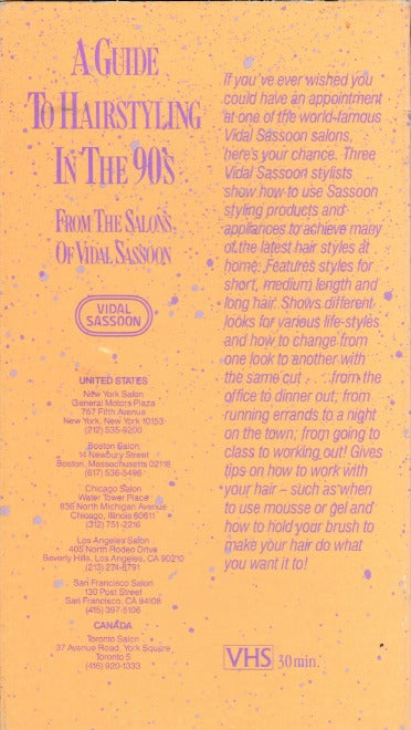 A Guide To Hair Styling In The 90's From Salons Of Vidal Sassoon VHS CASSETTE