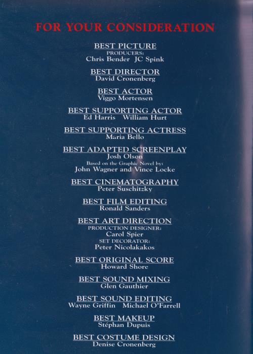 A History Of Violence FYC DVD VIDEO MOVIE Viggo Mortensen Ed Harris William Hurt