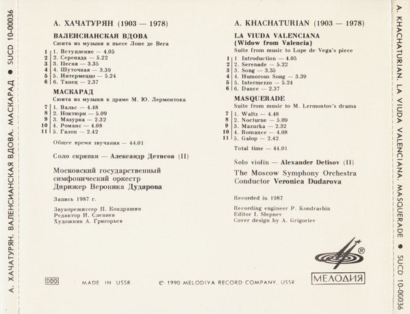 Aram Khatchaturian - Moscow State Symphony Orchestra, Veronica Dudarova: La Viuda Valenciana / Masquerade