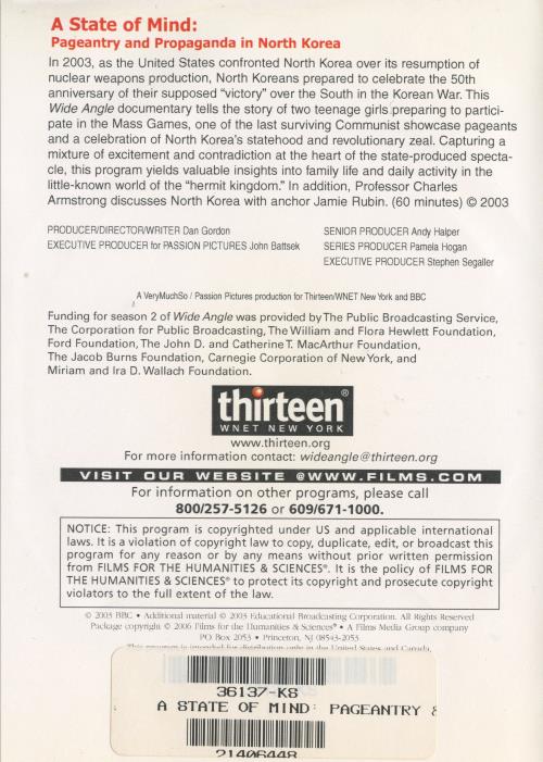 A State Of Mind: Pageantry And Propaganda In North Korea DVD VIDEO DOCUMENTARY