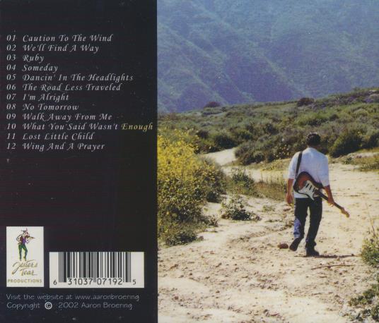 Aaron Broering is a singer-songwriter whose sound blends acoustic folk and melodic pop-rock. His songs emphasize storytelling, memorable melodies, and clean guitar work. The Road Less Traveled showcases intimate vocals and radio-friendly arrangements with a focus on heartfelt lyrics. This independent release was produced on the Jesters Tear Productions label in 2002.