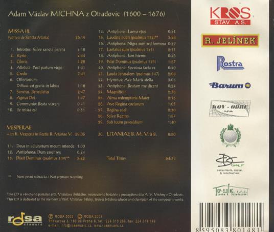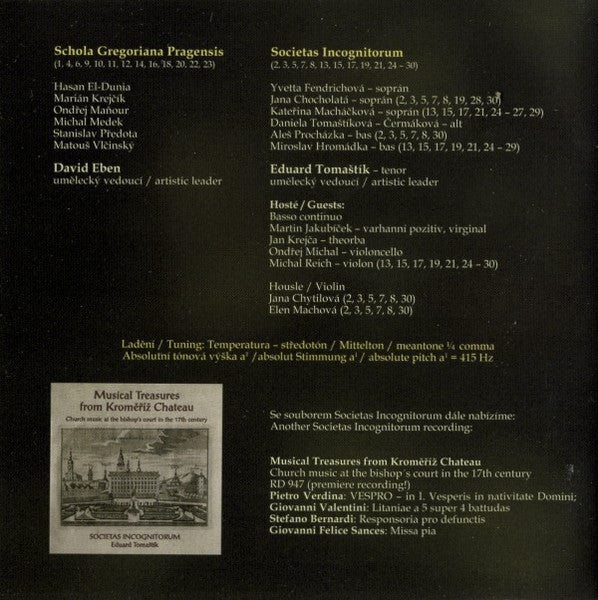 Adam Václav Michna z Otradovic, Schola Gregoriana Pragensis - David Eben, Societas Incognitorum - Eduard Tomaštík: Missa III., Vesperae Beatae Mariae Virginis, Litaniae B. M. V. à 8.