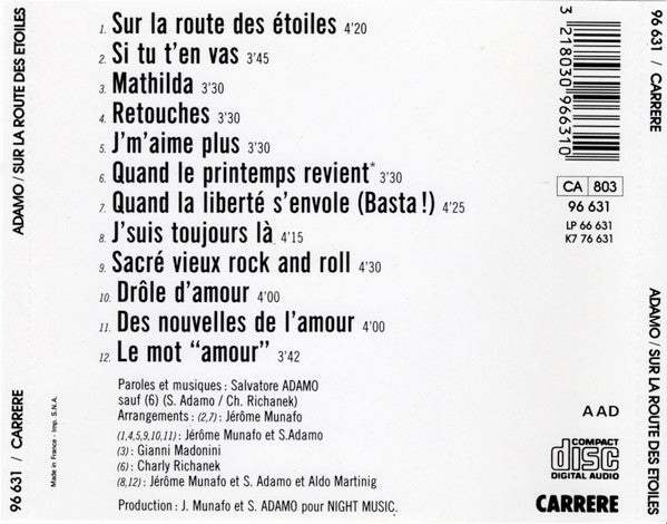 Adamo: Sur La Route Des Etoiles MUSIC AUDIO CD french chanson pop singer! 1989