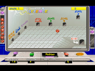 Wild Science Arcade. This activity combines fundamental principles of physics (gravity, friction, magnetism, electricity) with challenging arcade-style games. Children guide balls through a maze of approximately 100 rooms. The first room includes several doors that lead to different parts of the game. Children can select from different types of balls -- rubber, glass, lead, etc and see how the balls change when pushed and rolled. Children can set gravity and friction to different levels and see the effects on the balls and how they roll and bounce.