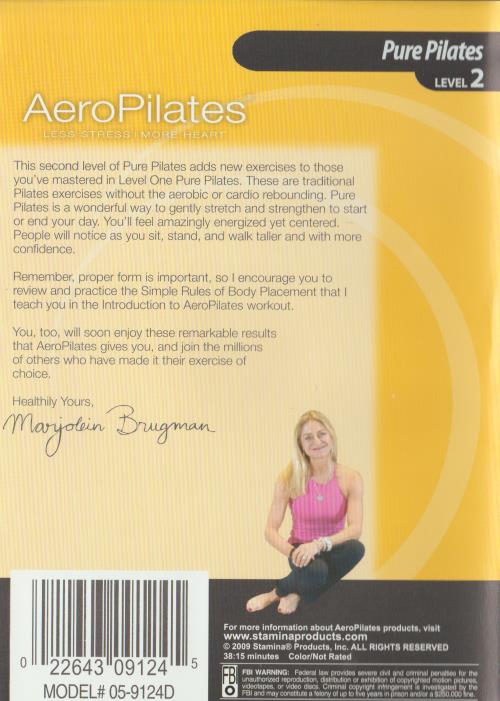 This second level of Pure Pilates adds new exercises to those mastered in AeroPilates Level One Pure Pilates. These are traditional Pilates exercises without the aerobic or cardio rebounding. Pure Pilates is a wonderful way to gently strengthen and stretch to start or end your day. You'll feel amazingly energized yet centered. People will notice as you sit, stand, and walk taller and with more confidence