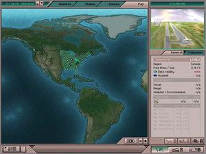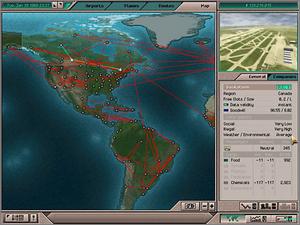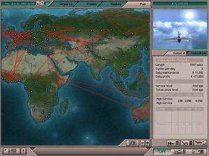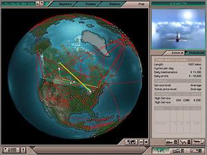 In Airlines 2, players will take over an airline company and tackle storms, fuel shortages, irresponsible flight attendants, demanding passengers, and financial strategies. Gameplay offers 20 starting planes (up to 110 as players progress), 253 airports, 300+ airplane routes, 15 global regions, up to seven computer opponents, four game modes, over 100 company stock options, 12 minutes of music, detailed airline animations, an 800x600 resolution, and a spinning 3D globe to aid navigation.