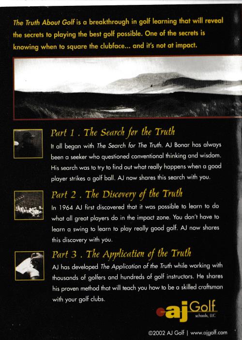 Part 1 - The Search for the Truth It all began with The Search for The Truth. AJ Bonar has always been a seeker who questioned conventional thinking and wisdom. His search was to try to find out what really happens when a good player strikes a golf ball. AJ now shares this search with you.