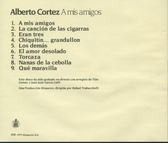 Alberto Cortez: A Mis Amigos MUSIC AUDIO CD latin folk 1975 Ediciones Del Prado