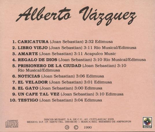 Alberto Vazquez: Self-Titled MUSIC AUDIO CD latin pop song ballad 1990 RARE DISC