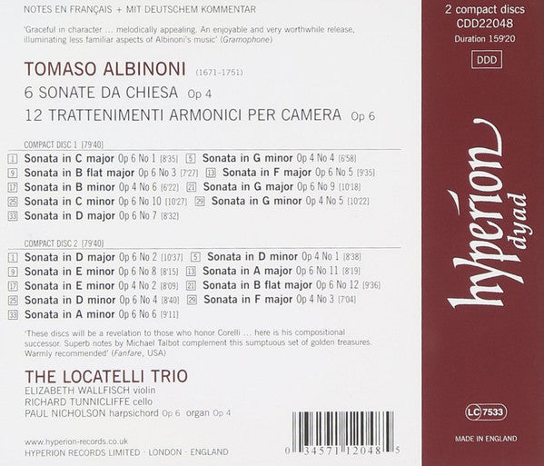The Tomaso Albinoni - Locatelli Trio: Sonate Da Chiesa Op 4; Trattenimenti Armonici Op 6