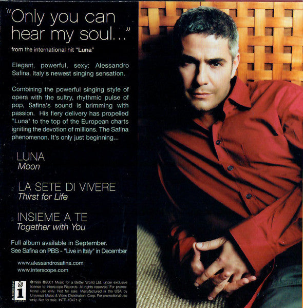Alessandro Safina Self-Titled PROMO MUSIC AUDIO CD pop classical 2001 Interscope