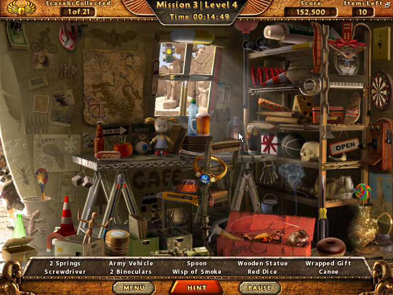 You are an adventurer who travels the world in search of forgotten and lost treasures. Search for hidden objects, collect precious scarabs, and outwit clever puzzle traps to recover the Lost Tomb of Ancient Egypt.