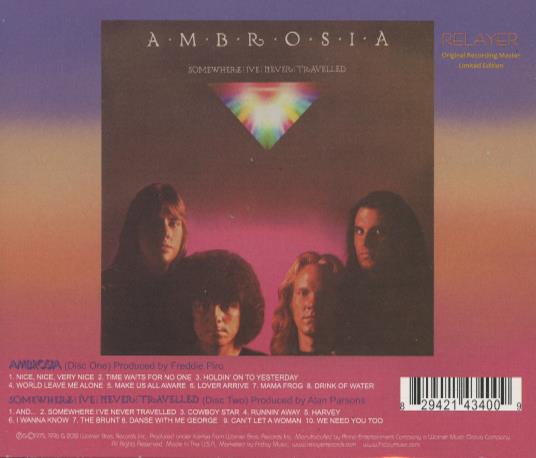 Two-disc set compiling Ambrosia (Disc One) and Somewhere I've Never Travelled (Disc Two). Disc One produced by Freddie Piro. Disc Two produced by Alan Parsons. Reissue/remaster noted on sleeve.