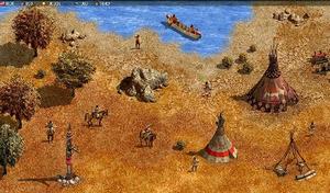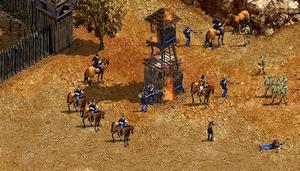 America, a real-time strategy game similar to Age of Empires or Settlers, is set during the 90 years following the United States' Civil War. Choose to direct Settlers, Indians, Mexicans, or Desperados, and manage units and resources to colonize the land under their rule. Each group offers distinctive abilities and appearances, with ten unique missions available for each of the competing factions across fifteen different game maps. As the game progresses, individual units develop different morale, life, and experience statistics according to their situations. Horses are a particularly vital resource and players may choose to breed, buy, or steal them to develop a strong cavalry. America's multiplayer options support up to eight players across a network.