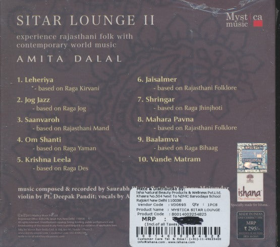 Amita Dalal: Sitar Lounge II MUSIC AUDIO CD instrumental Rajasthani folk! SEALED