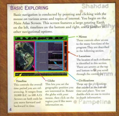Users travel through the roots of civilization in this illustrated, interactive guide to ancient history. This multimedia program covers over fifty cultures, spanning 20,000 years using interactive archeological expeditions, realistic 3-D constructions of major sites, pictorial essays, musical re-creations and more.
