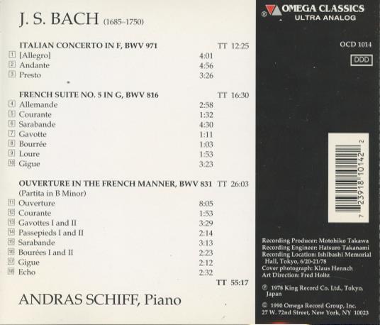 Andras Schiff: Johann Sebastian Bach MUSIC AUDIO CD solo piano baroque! 1990