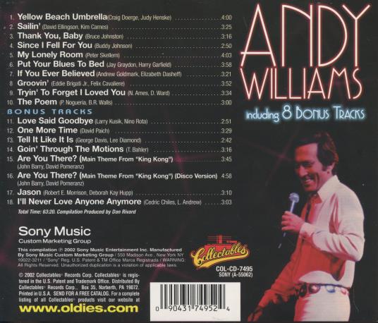 Andy Williams: Andy MUSIC AUDIO CD easy listening pop 2002 Reissue Collectables