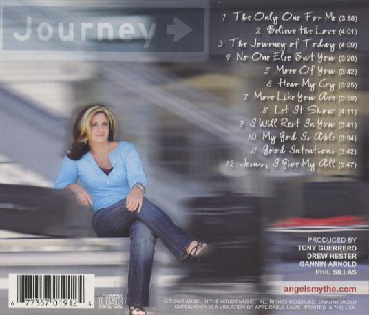 Angel Smythe is a solo singer who performs contemporary Christian pop and worship music. Her album The Journey blends inspirational lyrics with melodic pop arrangements and subtle acoustic touches. The songs emphasize faith, reflection, and personal devotion delivered with warm vocals and accessible production. The record features heartfelt ballads and mid tempo pop songs suitable for both worship and radio play.
