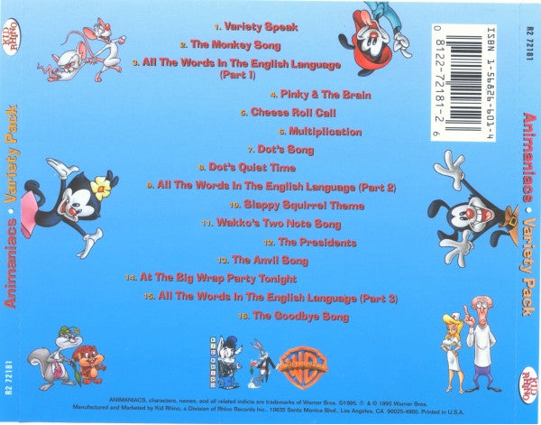 Animaniacs: Variety Pack From The Hit TV Series MUSIC AUDIO CD show soundtrack!