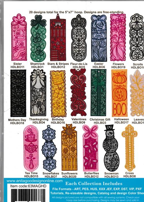 Anita Goodesign Mini Collection: Lace Bookmarks CD embroidery project patterns