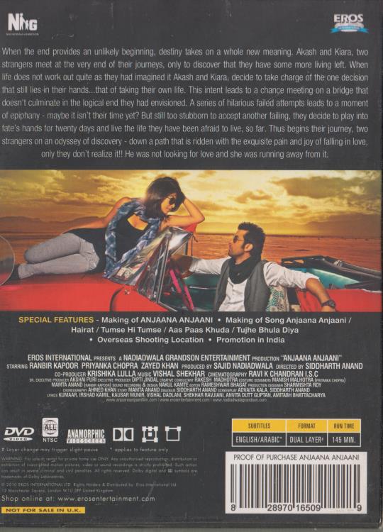 Anjaana Anjaani 2-Disc Set w/ Poster DVD VIDEO MOVIE Ranbir Kapoor Priyanka 2010