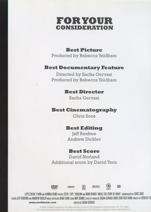 Anvil: The Story Of Anvil FYC DVD VIDEO MOVIE Canadian Metal group comedy 2009