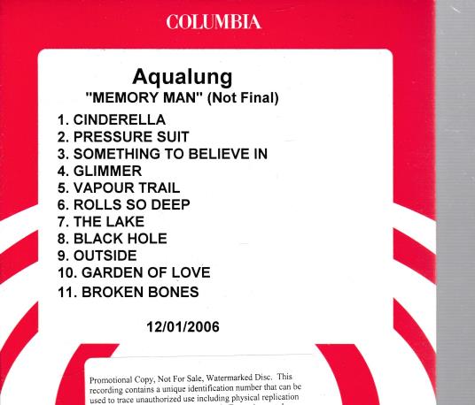 Aqualung: Memory Man PROMO MUSIC AUDIO CD Columbia Not Final pop rock 2006 album