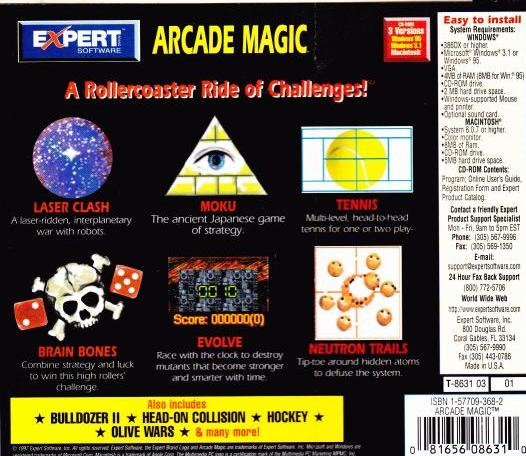 Arcade Magic is a diverse collection of white-hot arcade games. Battle inter-galactic enemies, match wits with foes that increase in intelligence, try the Japanese game Moku, customize 60 levels of play in the popular Bulldozer II, start a foodfight in Olive Wars and more!