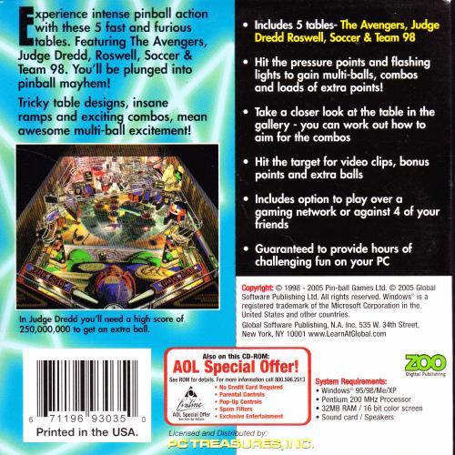 Arcade Pinball 2005 PC CD The Avengers Roswell Judge Dredd themed tables game!