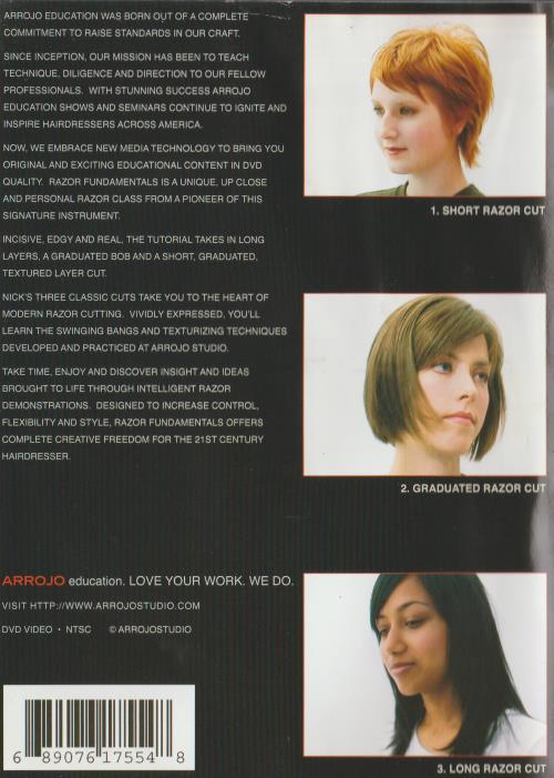 WAS BORN OUT OF A COMPLETE' COMMITMENT TO RAISE STANDARDS IN OUR CRAFT. SINCE INCEPTION, OUR MISSION HAS BEEN TO TEACH TECHNIQUE, DILIGENCE AND DIRECTION TO OUR FELLOW PROFESSIONALS. WITH STUNNING SUCCESS SHOWS AND SEMINARS CONTINUE TO IGNITE AND INSPIRE HAIRDRESSERS ACROSS AMERICA. NOW, WE EMBRACE NEW MEDIA TECHNOLOGY TO BRING YOU ORIGINAL AND EXCITING EDUCATIONAL CONTENT IN DVD QUALITY. FUNDAMENTALS IS A UNIQUE, UP CLOSE AND PERSONAL CLASS FROM A PIONEER OF THIS SIGNATURE INSTRUMENT. INCISIVE, EDGY AND REAL, THE TUTORIAL TAKES IN LONG LAYERS, A GRADUATED BOB AND A SHORT, GRADUATED, TEXTURED LAYER CUT. NICK'S THREE CLASSIC CUTS TAKE YOU TO THE HEART OF MODERN CUTTING. VIVIDLY EXPRESSED, YOU'LL LEARN THE SWINGING BANGS AND TEXTURIZING TECHNIQUES DEVELOPED AND PRACTICED AT STUDIO. TAKE TIME, ENJOY AND DISCOVER INSIGHT AND IDEAS BROUGHT TO LIFE THROUGH INTELLIGENT DEMONSTRATIONS, DESIGNED TO INCREASE CONTROL, FLEXIBILITY AND STYLE, FUNDAMENTALS OFFERS COMPLETE CREATIVE FREEDOM FOR THE 21ST CENTURY HAIRDRESSER. RROJO education. LOVE YOUR WORK. WE DO.