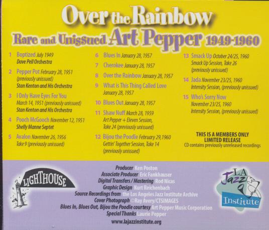 ART PEPPER: OVER THE RAINBOW: RARE AND UNISSUED: 1949-1960 LIMITED