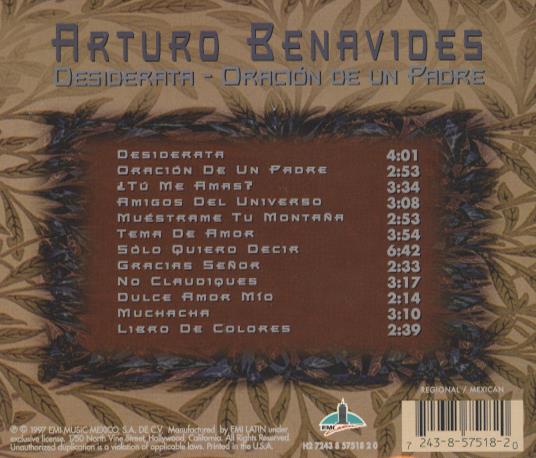 Arturo Benavides: Desiderata: Oracion De Un Padre MUSIC AUDIO CD latin classical