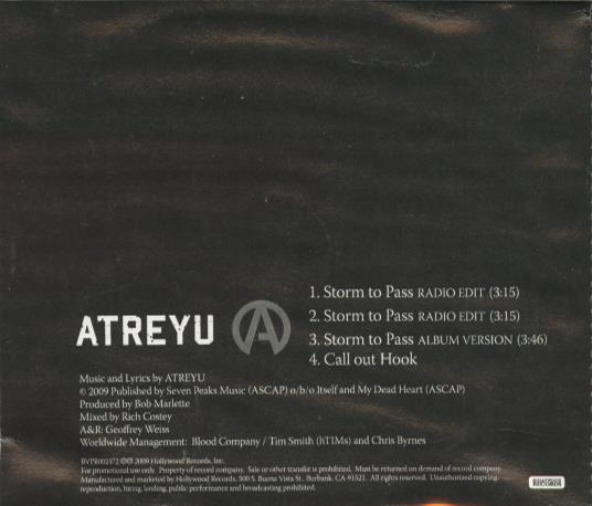Atreyu: Storm To Pass PROMO MUSIC AUDIO CD metalcore post-hardcore rock! 2009