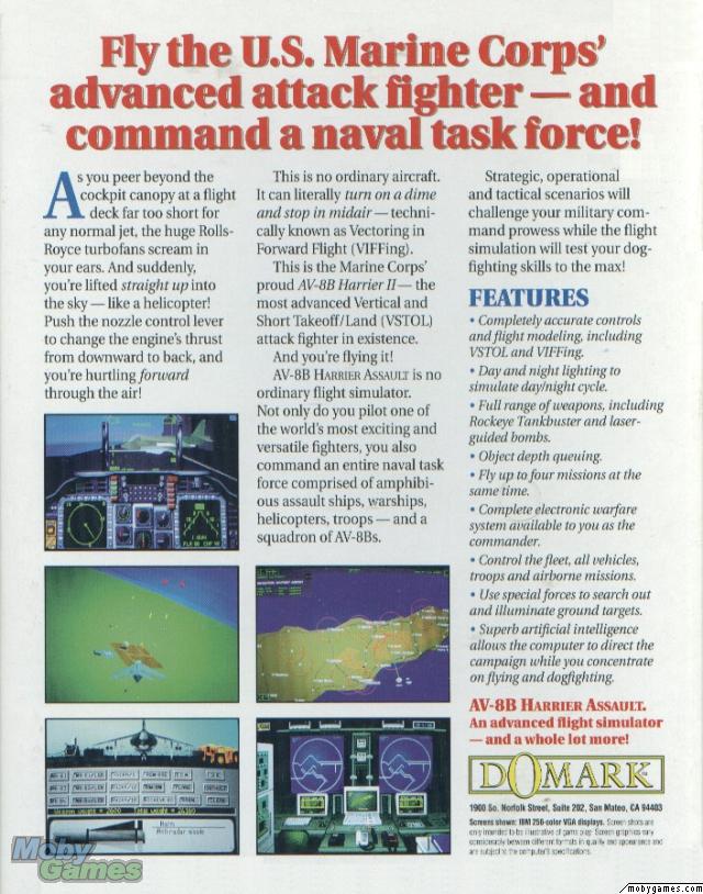 This game puts you behind the controls of the AV8B Harrier aircraft. You must plan a strategic assault upon the enemy island of East Timor which is heavily defended. As well as allowing you to fly the Harrier, you can also plan attacks with your ground and naval forces.