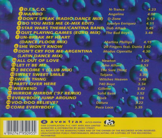 Compilation P+C 1997 Avex Asia Limited. Marketed & distributed by Music Street. Catalog number: AVTCD-95095M.