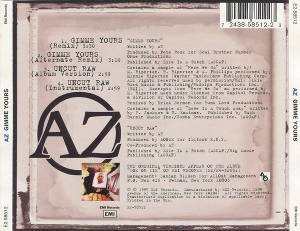 AZ: Gimme Yours MUSIC AUDIO CD mid 90s hip hop rap maxi-single remix! 1995 EMI