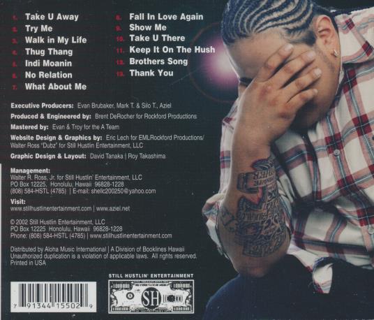 Aziel is a Hawaiian hip hop and R&B artist who blends smooth vocal melodies with streetwise rap. This release showcases personal lyrics, island-influenced rhythms and contemporary urban production. Songs range from romantic slow jams to harder-edged tracks, reflecting his versatility as a singer and MC. The album highlights Aziel's soulful delivery and storytelling throughout.